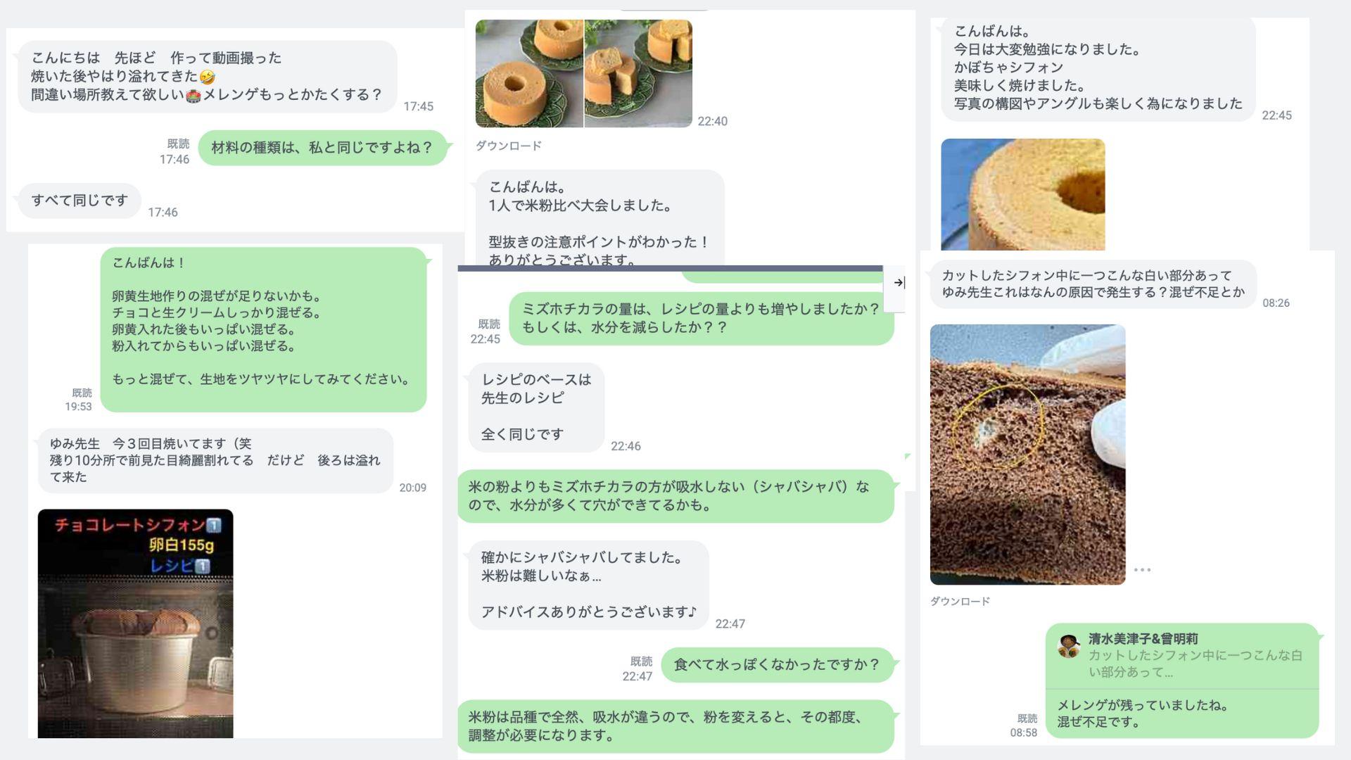 配布資料(小麦15種、米粉1種、座学)/予習動画/アーカイブ録画(永年視聴可)/LINE質問・添削 |